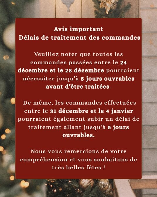 ***Les commandes ne sont pas traitées ni expédiées le week-end.